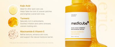 سرم کپسولی شفاف کننده و متعادل کننده زردچوبه مدیکوب Medicube مدل Kojic Acid Turmeric، ترکیبی از کوجیک اسید، زردچوبه، نیاسینامید و ویتامین E است که پوست شما را روشن، یکدست و صاف میکند. کوجیک اسید لکههای ناهموار را هدف قرار میدهد و رنگ پوست را روشنتر میکند، زردچوبه سوزش را تسکین میدهد و در برابر عوامل استرسزای روزانه از پوست محافظت میکند، در حالی که نیاسینامید و ویتامین E بافت را بهبود میبخشند، درخشندگی را افزایش میدهند و از تعادل رطوبت محافظت میکنند. این سرم که با کپسولهای منحصر به فرد شبیه دانه برف ارائه میشود، جذب را برای اثرات بهتر افزایش میدهد. از نظر بالینی ثابت شده است که تنها در عرض دو هفته پوستی شفافتر و درخشانتر را آشکار میکند. با این ترکیب قدرتمند که برای درخششی درخشان و سالم طراحی شده است، چهرهای احیا شده را تجربه کنید.